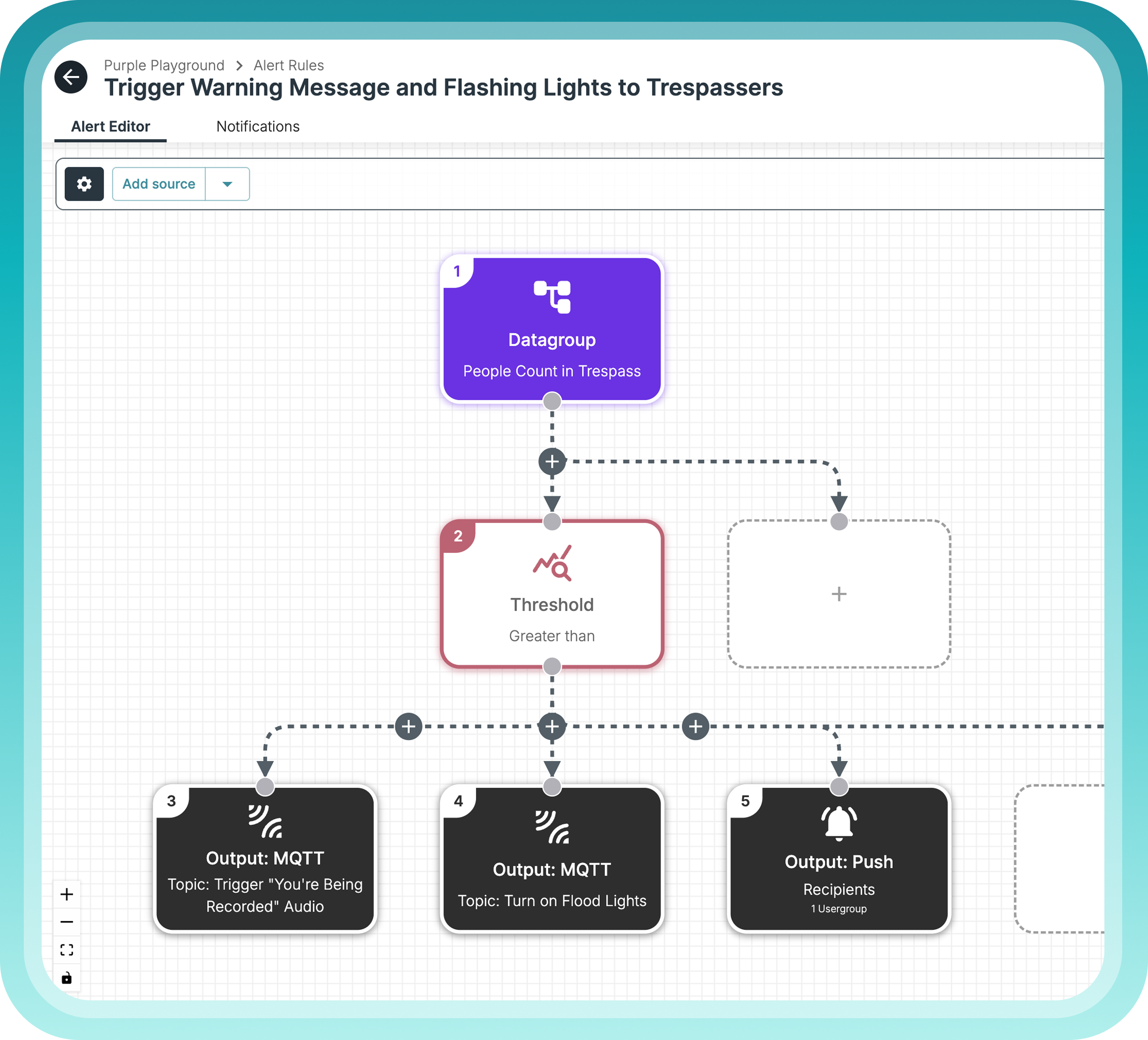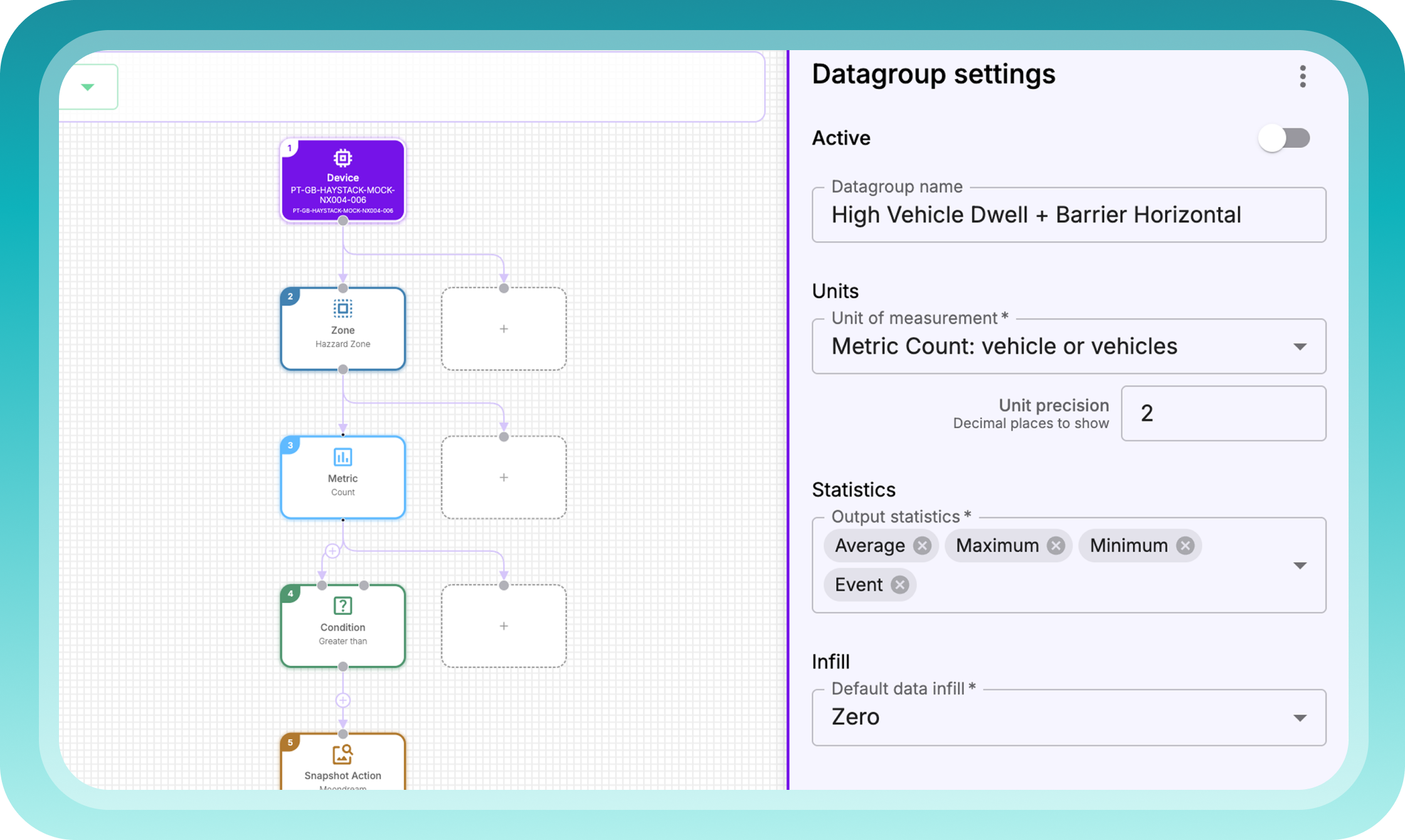Our modular use case builder allows you to combine vision, IoT and existing systems into logical decision trees - enabling advanced, real-world use cases such as detecting if a vehicle is dwelling in a zone while a barrier is down.