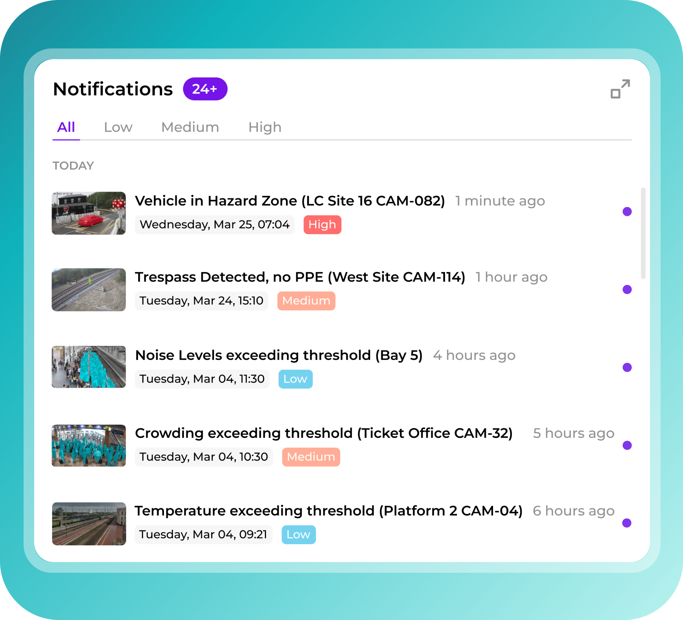 Every alert is enriched with visual and data context, ensuring teams are informed and ready to respond.